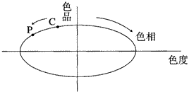 [案例]:在下图中,我们讨论对色度进行调整。车身颜色(c点)比油漆颜色(P点)更浓或色彩饱和度更高。 加人主色调的色母可以增加色度。例如是绿色银粉漆,那么添加绿色色母会增强色度。而添加黑色、白色或银粉将会降低饱和度,即减弱色度。